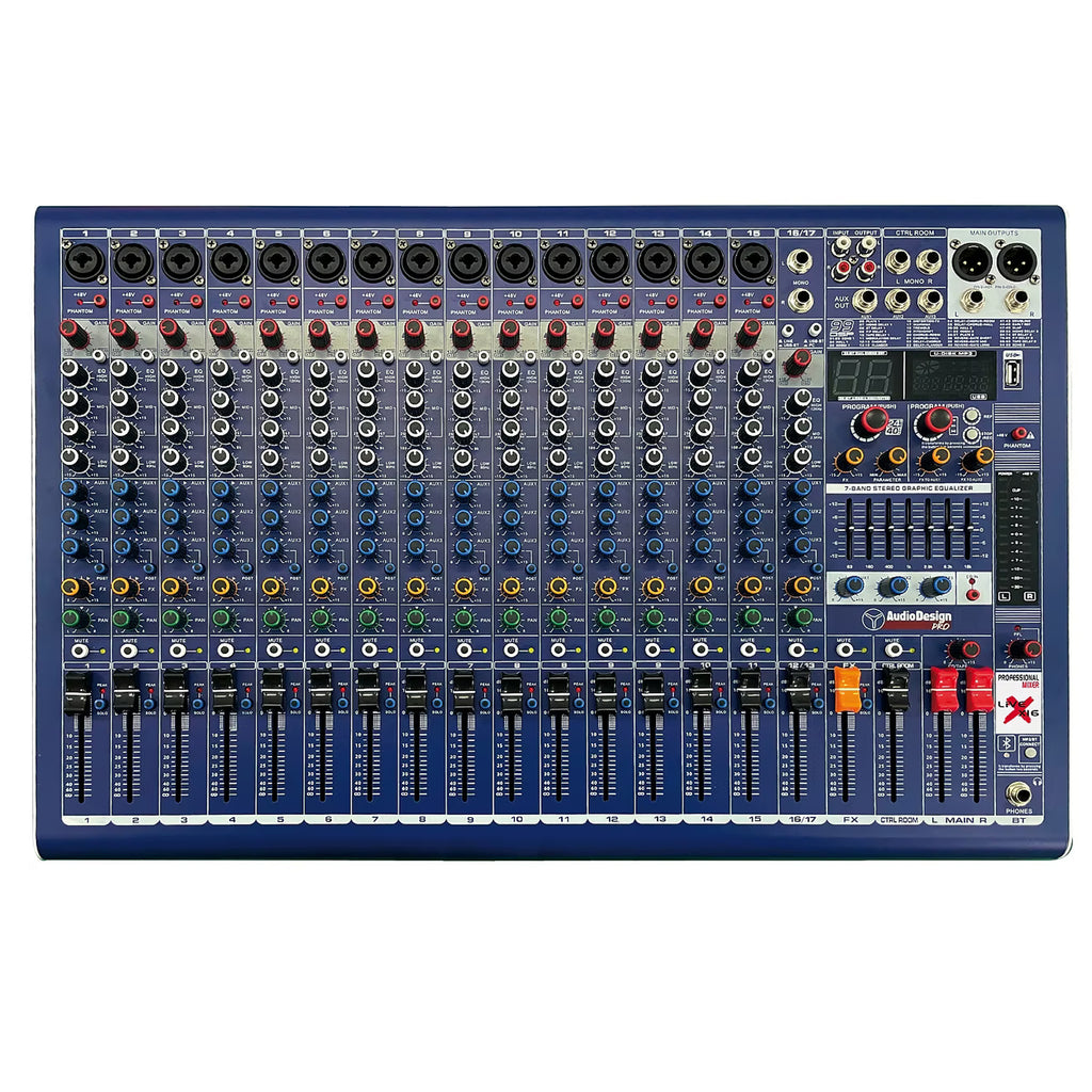 Audiodesign LIVE X16 Mixer Pro 17C 15Mono 1St. 3Aux DUAL USB/PC BT DSP 99 EFX