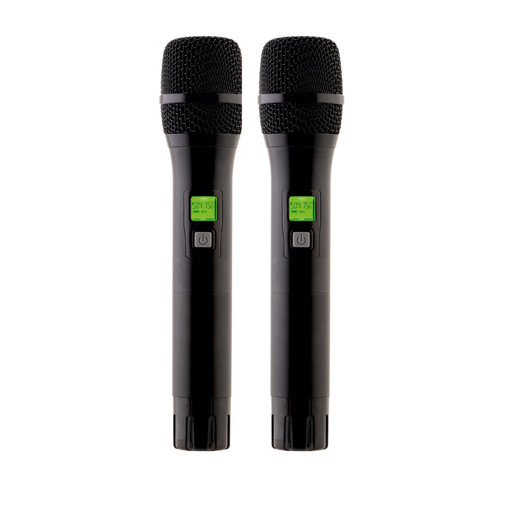 Audiodesign PMU 2212 Sistema Microfonico Wireless con 2 Palmari Gelato UHF. Frequenze: da 480,000 a 504,750 MHz - 100 + 100 Canali. Funzione SCAN sul ricevitore per la scelta delle frequenze libere. Potenza di trasmissione regolabile (5 e 10 mW). Alimentazione trasmettitori con 2 batterie a stilo (AA) non incluse e d'acquistare a parte. Indicatore di carica delle batteria sul microfono e sulla centralina. Volume di uscita regolabile separatamente. Uscita con canali separati con XLR. Uscita con canali sommati Jack. Ricevitore in formato 1U. Antenne rimuovibili con connettore BNC.