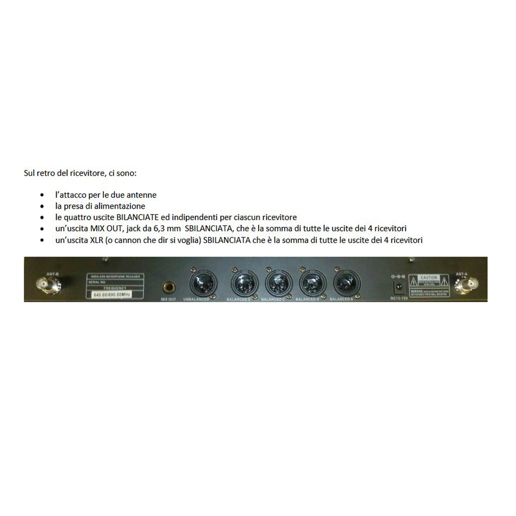 Sistema Microfonico Wireless con 4 Palmari Gelato UHF Frequenze: da 635,00 a 684,750 MHz - 100 + 100 Canali.