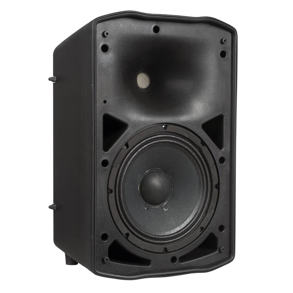 Il cabinet in PP ad alta densità, compatto e leggero, è dotato di un attacco per palo da 35 mm, tre maniglie in alluminio incassate per un facile sollevamento e movimentazione e punti di aggancio M10 per consentire la sospensione in installazioni fisse tramite staffe di montaggio opzionali.