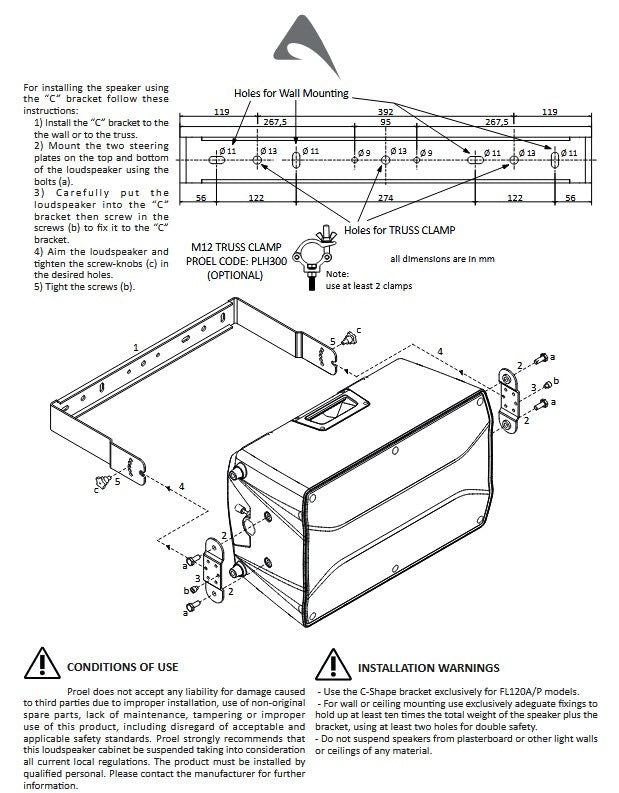 L'FL120A può essere montato a parete in installazioni permanenti, sia in verticale che in orizzontale, utilizzando la staffa a parete KPTFL12X. La staffa a parete consente una regolazione rotazionale incrementale in cinque fasi per consentire un orientamento preciso del diffusore.