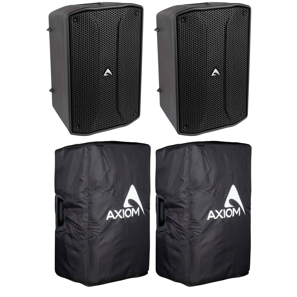 Coppia Cassa Monitor Diffusore Audio bi-amplificato Professionale da 12" a 2 vie, potenza di 1200W RMS, per applicazioni portatili e fisse, Nero + Coppia Cover di protezione e trasporto per diffusore audio AXIOM FL120A, Nero.