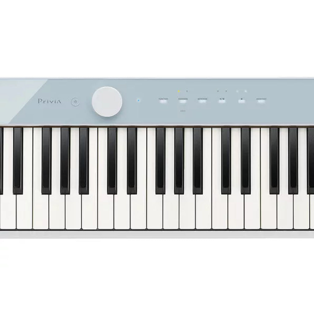 Casio PX-S1100MB Tastiera Digitale Compatta a 88 Tasti con martelletti sottili, Calm Blue. Uno degli elementi più incredibili del Privia PX-S1100 è la sua struttura compatta. Si tratta del pianoforte digitale a 88 tasti con sistema a martelletti più sottile al mondo. Con una profondità di solo 232 mm, si inserisce perfettamente in qualsiasi contesto o spazio, anche ridotto. Il sistema di altoparlanti interno, potenziato, ravviva il suono con calde sfumature e garantisce così all'ascoltatore una sensazione molto avvolgente. Anche il range dinamico ne beneficia: il risultato è un suono equilibrato con un'ampia dinamica tra i timbri delicati e sottili e quelli più gravi e potenti. La tastiera Smart Scaled Hammer Action Keyboard, il cui meccanismo è stato ridotto al minimo per adattarsi alla struttura compatta, riproduce la sensazione e il peso della tastiera di un pianoforte a coda. Ciascuno degli 88 tasti ha la propria pesatura per la corretta produzione del suono e il suo smorzamento, regalando così la sensazione di suonare un pianoforte a coda da concerto.