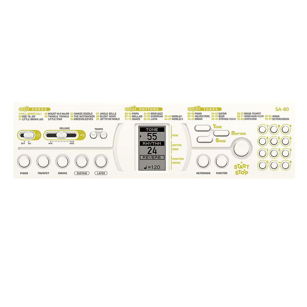 Le nuove Casiotone SA-80 sono innovate con un nuovo chip sonoro che migliora la qualità del suono ed espande le possibilità creative offrendo nuove funzioni ed effetti, come riverbero, sustain e layer. Inoltre, le mini-tastiere forniscono un metronomo integrato e la funzione di trasposizione: in breve, tutto ciò di cui hai bisogno per muovere i primi passi nel mondo della musica.