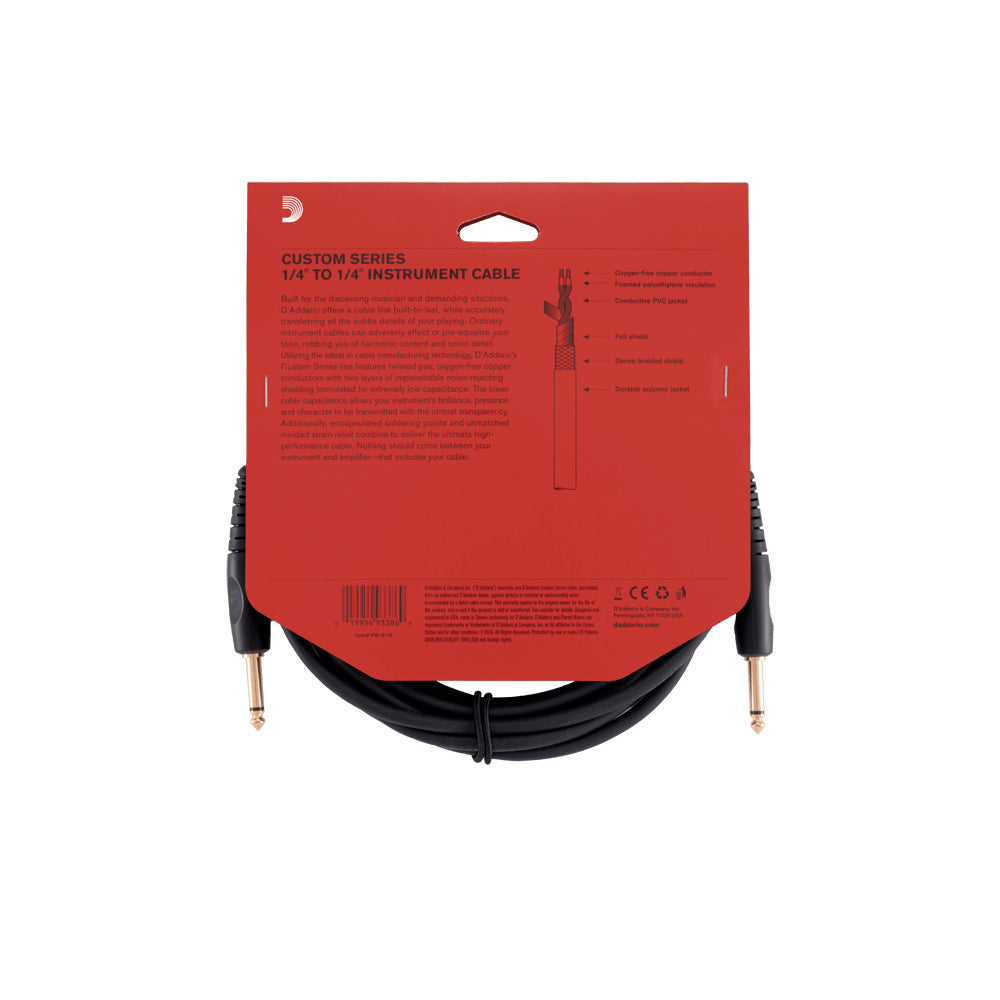 I cavi D'Addario Custom Series utilizzano conduttori in rame ultrapuro, twisted pair, privo di ossigeno per bassa capacità e tono puro. Punti di saldatura incapsulati e impenetrabili con pressacavo a doppia stampata garantiscono la massima durata e affidabilità senza preoccupazioni. Due strati di schermatura forniscono una copertura del 100% per una reiezione del rumore superiore e un rumore di manipolazione minimo, rendendo questo un cavo superiore e ad alte prestazioni. Disponibile anche in stereo (TRS) nelle lunghezze 10' e 25'.