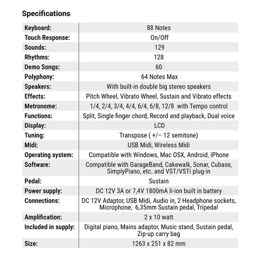 Accessori Inclusi: Alimentatore, Leggio, Pedale Sustain e Borsa