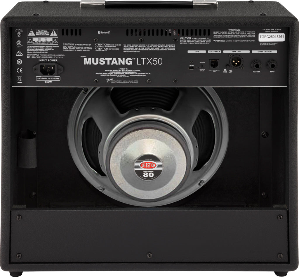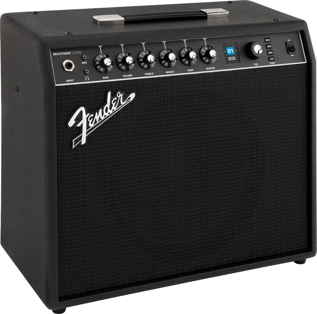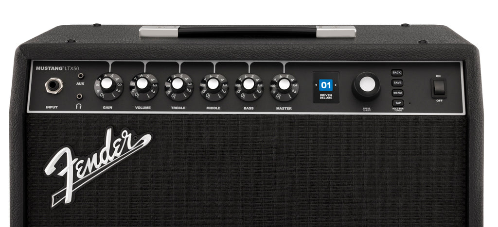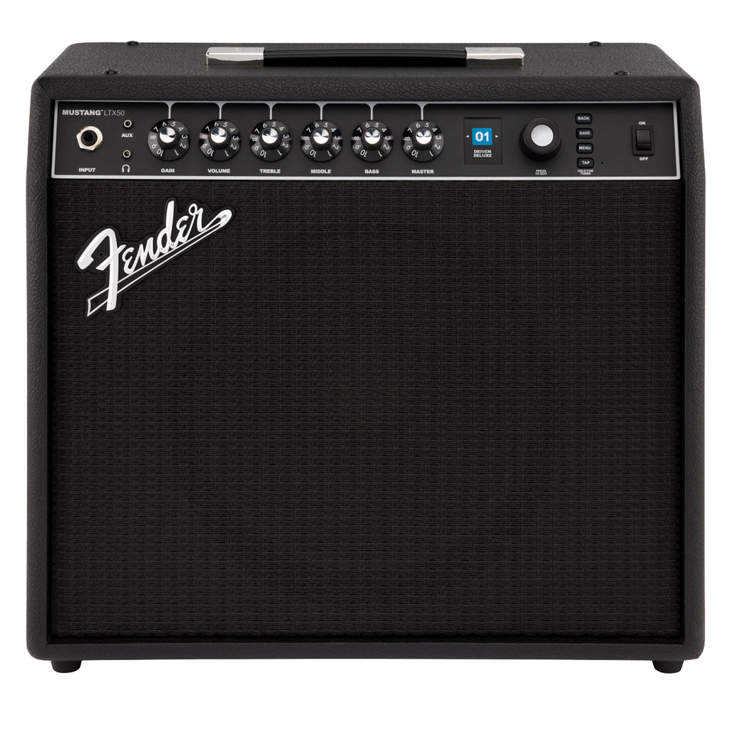 Mustang® LTX è l'ultimo nato nella linea di amplificatori per chitarra più famosa al mondo. Unendo funzionalità high-tech con il classico design Fender®, Mustang® LTX è perfetto per musicisti di qualsiasi livello. È dotato di un'intuitiva interfaccia utente con 50 modelli di ampli ed effetti adatti a qualsiasi stile musicale, 100 slot preset, un percorso del segnale configurabile e un display a colori integrato con accordatore interno. Mustang® LTX 50 è ideale per esercitarsi e per esibirsi, con un altoparlante da 12" Celestion® G12P-80 e un interruttore a pedale opzionale a cinque pulsanti, perfetto per il palco. Il Bluetooth® incorporato ti permette di suonare sui tuoi pezzi preferiti, così come di creare, modificare, scaricare e condividere i preset usando l'app Fender TONE®.