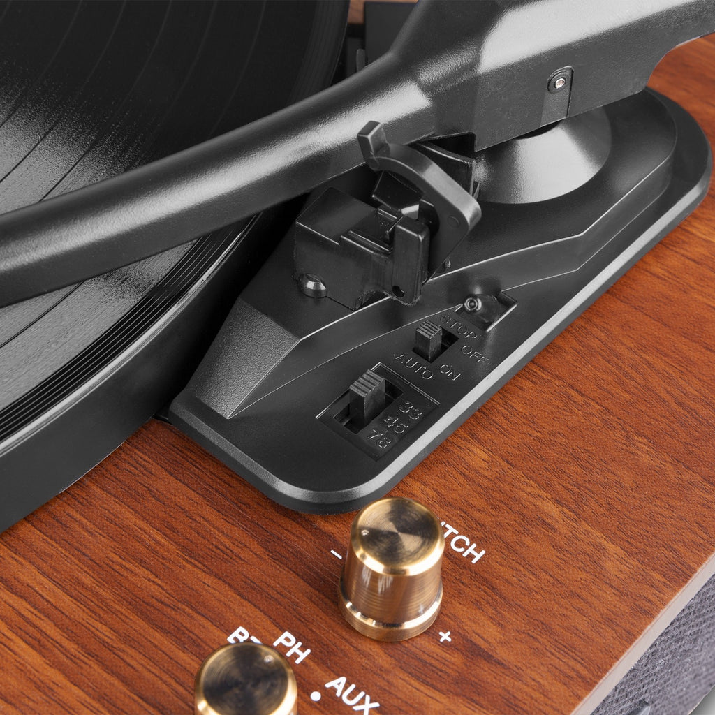 Giradischi vintage con streaming Bluetooth e funzione USB e Altoparlanti stereo integrati, Marrone Scuro.