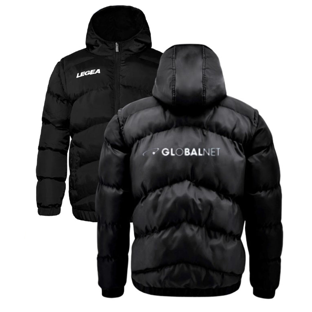 Giubbotto XL prodotto da Legea e brandizzato Global Net, Nero.