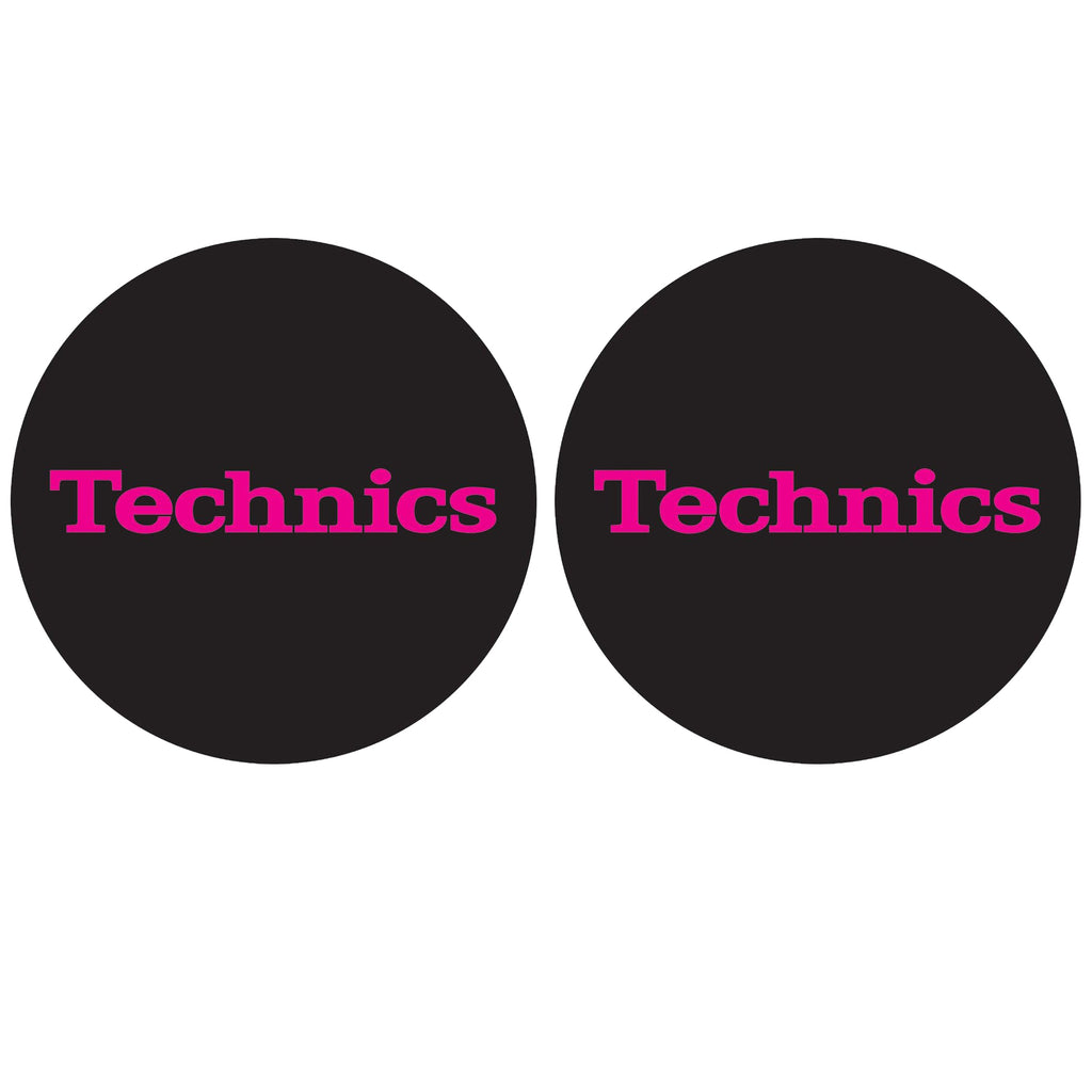 Coppia di Feltri per giradischi Dj, fondo nero e con Logo Technics in Rosa.