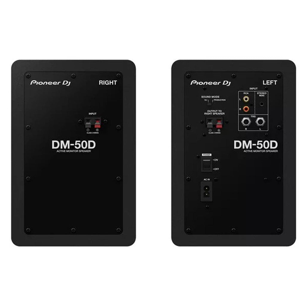 Pioneer DM-50D Coppia casse studio monitor attivi homestudio desktop da 5" e 50W, Nero. Gli altoparlanti DM-50D offrono un suono basso equilibrato e incisivo e possono pompare potenza extra quando ne hai bisogno, poiché ogni unità è caricata con un nuovo amplificatore di classe D e un woofer da 5 pollici. Premere l’interruttore per passare dalla modalità DJ a quella di produzione: le impostazioni DSP si regoleranno automaticamente per creare il sound migliore per ogni applicazione.