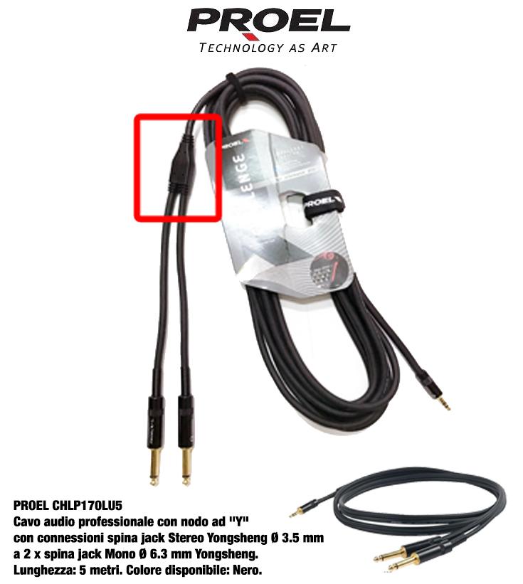Proel CHLP170LU5 Cavo audio con nodo a Y e jack 3.5 Stereo a 2 jack 6.3 Mono 5mt