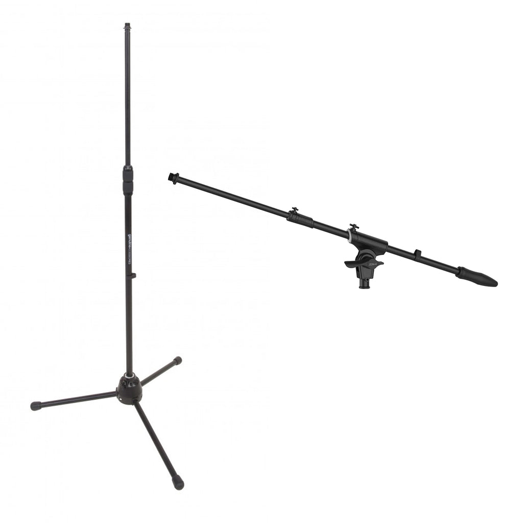 Asta microfonica professionale dritta con base tripoide ottima stabilita', Nero + Asta microfonica aggiuntiva con filettatura d'avvito 3/8" e 5/8", Nero Opaco.