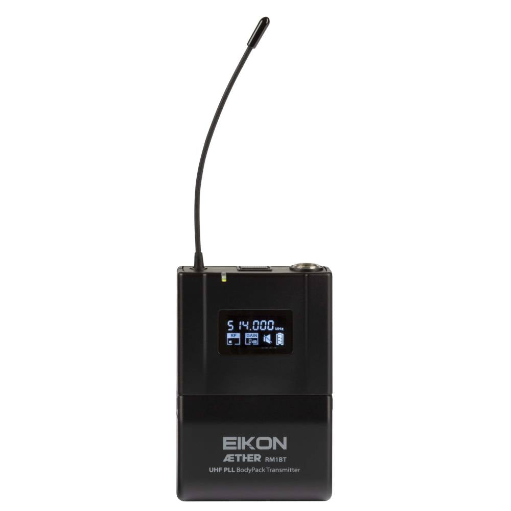EIKON presenta la nuova serie wireless AETHER, dedicata a tutti gli utenti professionali con la sua qualità del suono cristallina e la sua interfaccia completa e intuitiva. Grazie alla possibilità di completare il sistema con una serie di accessori, AETHER rappresenta la scelta ideale per applicazioni vocali professionali, teatri, club, società di noleggio, installatori e tutti le più esigenti applicazioni professionali. Il microfono wireless AETHER RM1 è un sistema professionale UHF PLL, true diversity che fornisce una trasmissione del segnale affidabile e di alta qualità, dotato di scansione automatica dei canali e sincronizzazione IR. Il sistema microfonico wireless RM1 comprende 3 unità: ricevitore RM1, trasmettitore portatile RM1HT e trasmettitore body pack RM1BT.