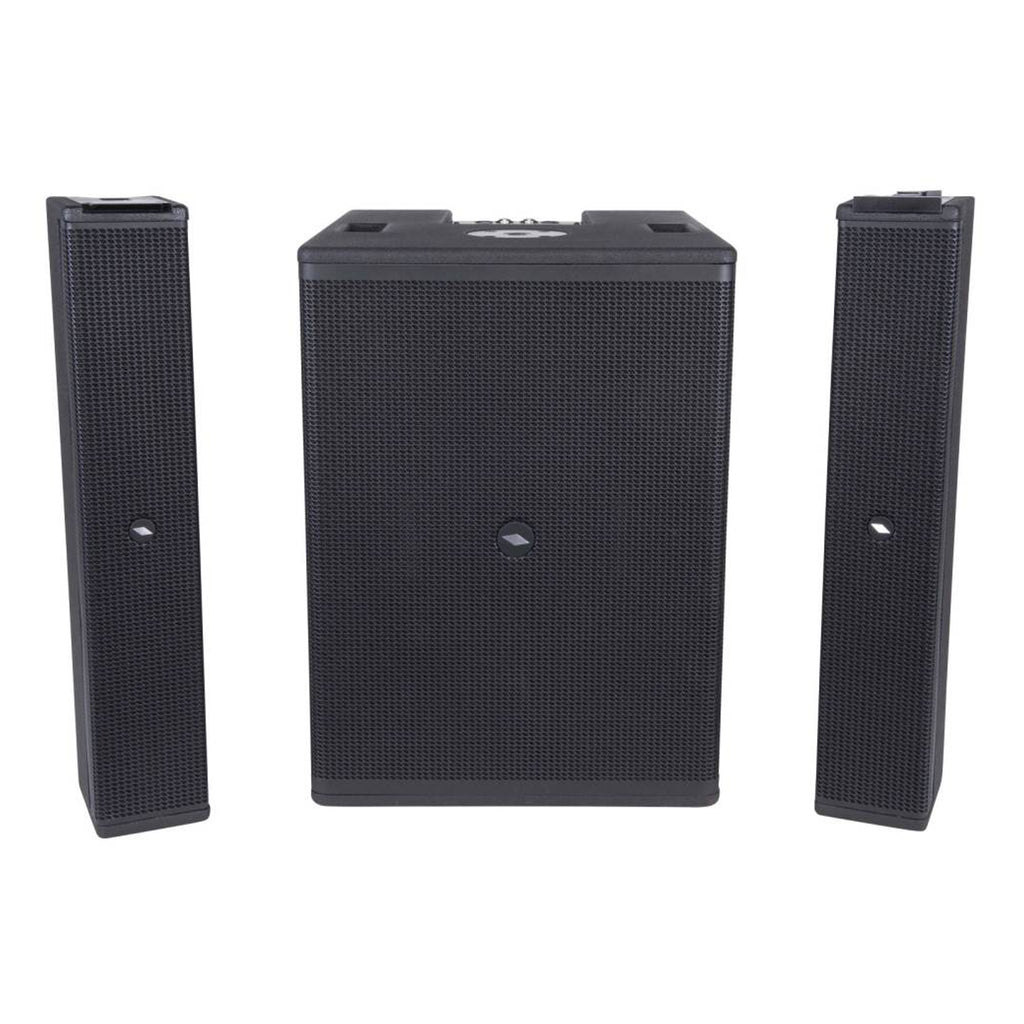 Tipo di sistema Sistema 2.1 portatile alimentato con due top line array e un subwoofer