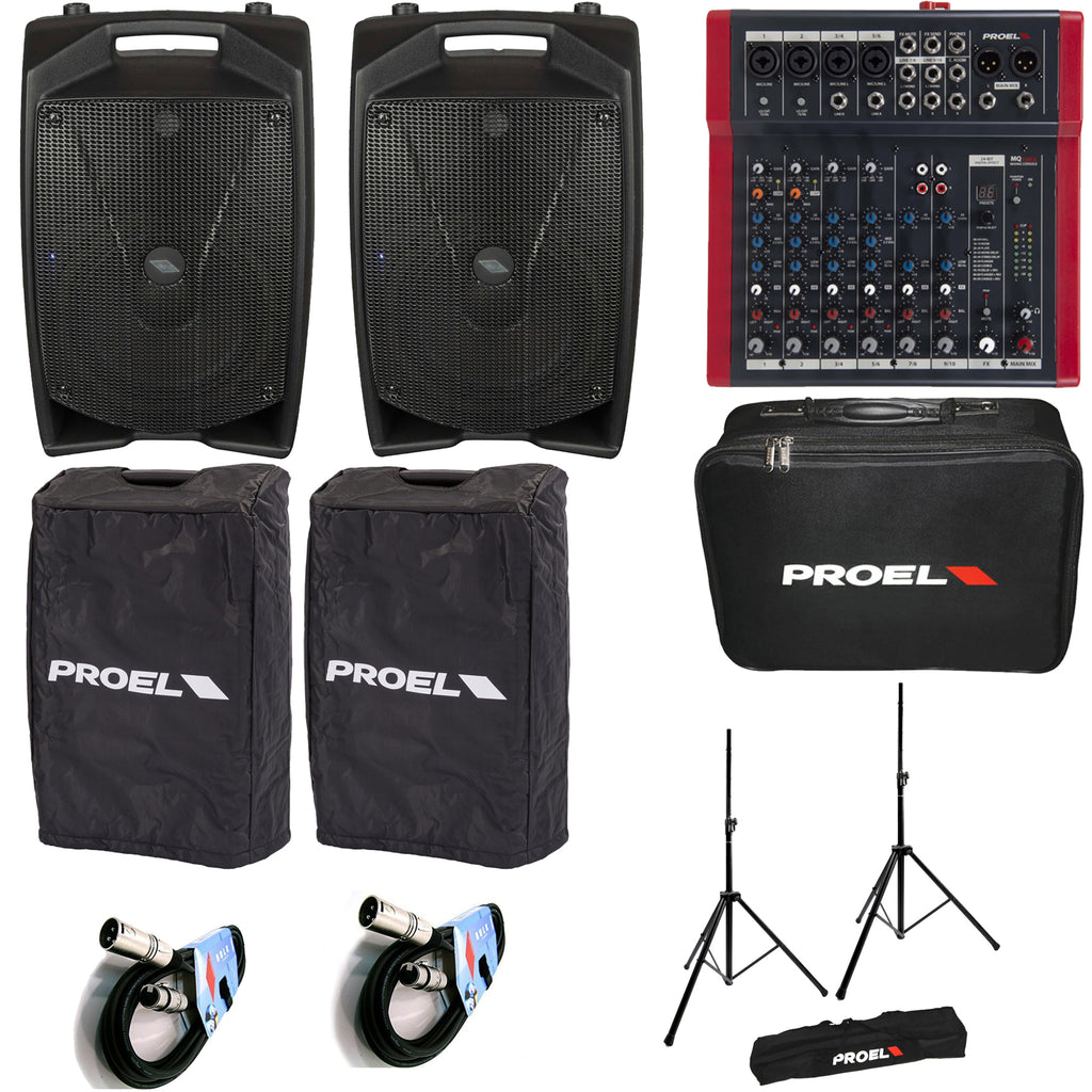 PROEL V12 PRO COPPIA + PROEL MQ10FX + BAG MIXER + PROEL FRE300KIT + PROEL COVERV12 + PROEL BULK250LU10 COPPIA