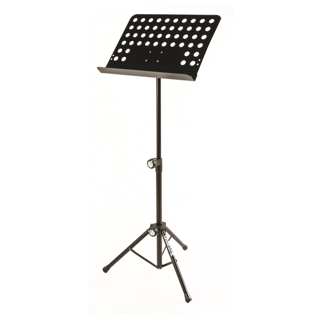 Leggio con piano in metallo traforato costruito utilizzando un resistente tubolare in acciaio e componenti di alta qualità. Il robusto design della base del treppiede assicura la massima stabilità. Verniciato con polvere antigraffio e smalto antiriflesso nero. Il comodo ripiano appoggia spartiti si aggancia/sgancia e si fissa in maniera semplice e veloce per prevenire danni durante il trasporto. Le gambe si ripiegano e una volta chiuso è comodamente trasportabile con la borsa in nylon fornita in dotazione. Stesse caratteristiche del modello Quik Lok MS/330 WB ma in versione BB Brown Box con imballo standard avana, senza scatola colorata. Quik Lok MS/330 Leggio Leggero tipo Orchestra con Piano Traforato.