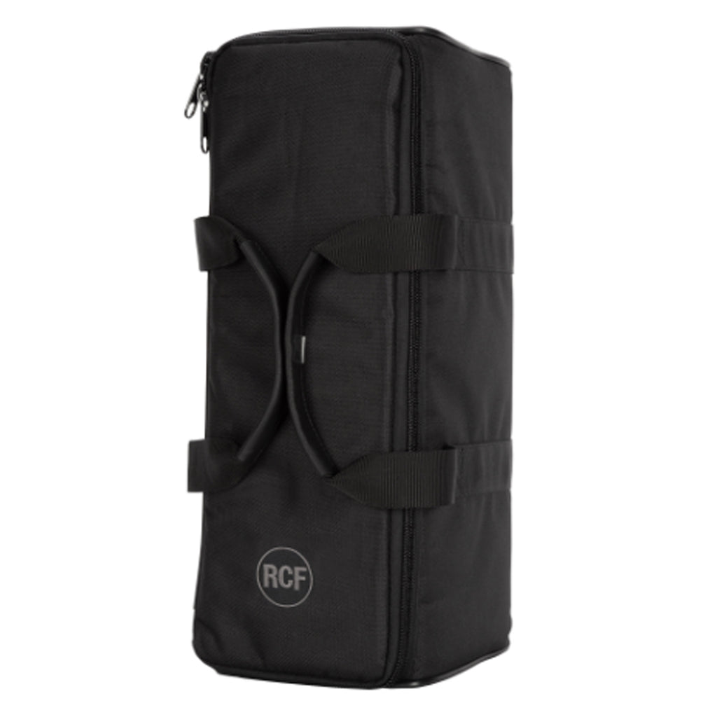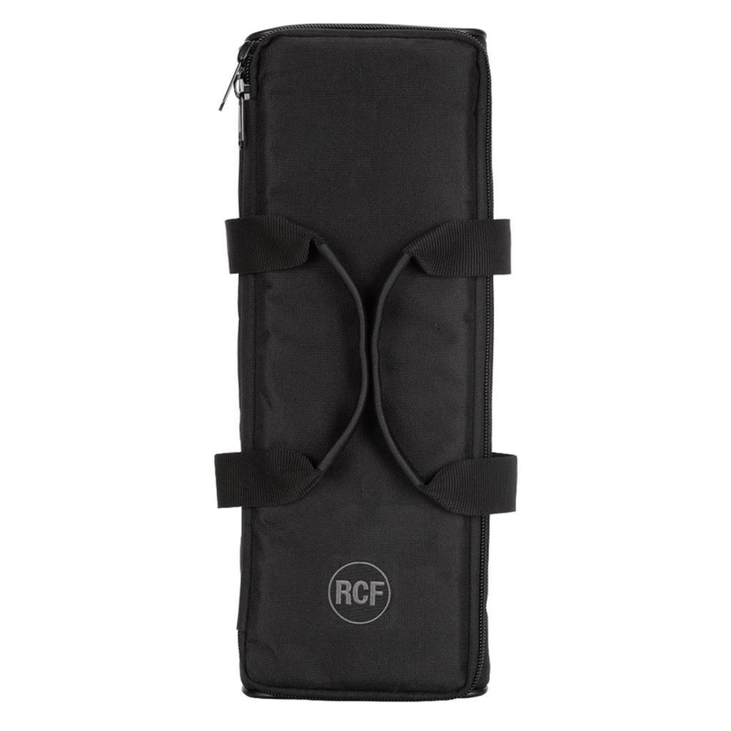 Copertura imbottita per diffusore RCF KX 515-A. È dotata di un robusto tessuto esterno in poliestere, imbottitura in gommapiuma, aperture con cerniera e due maniglie per il trasporto.