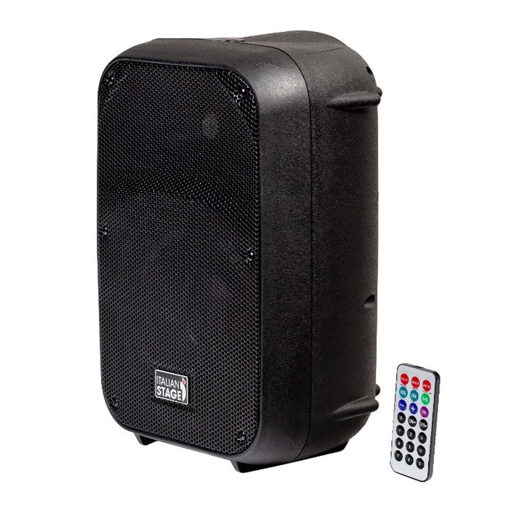 Italian Stage IS SPX08AUB Cassa Attiva diffusore bi-amplificato da 300w di Picco e 8" con Multimedia player: Usb Flash Drive, Sd Memory Card, STEREO Bluetooth Device, Remote Control. Colore: Nero. Woofer 8'', Driver 1'', Line OUT XLR + ¼" JACK, Line IN XLR + 2 x RCA, Mic IN XLR + ¼" JACK, Risposta in frequenza 60hz-20khz. - Peak spl 123 dB. L'articolo è dotato di foro per aggancio stativo; utitlizzare uno stativo (non incluso e d'acquistare a parte) con flangia da 35mm.