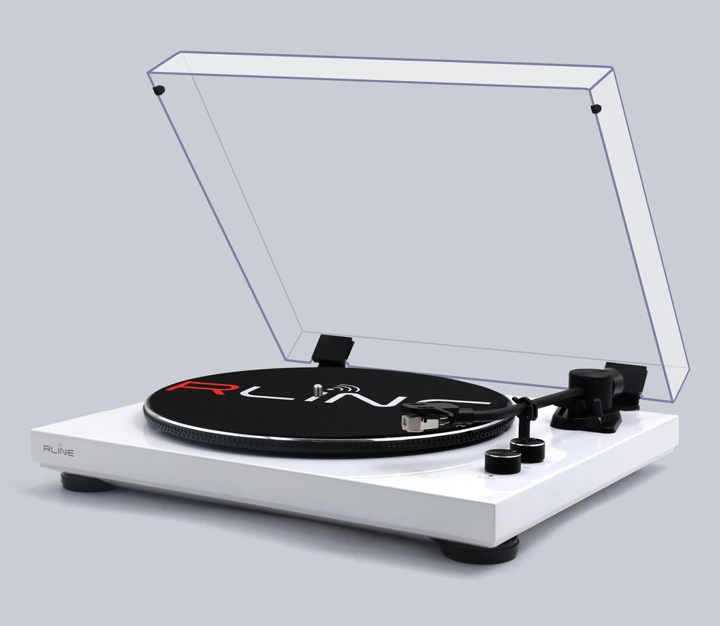 Giradischi con trazione a cinghia e modulo Bluetooth per cuffie o speaker BT wireless, Bianco Lucido.