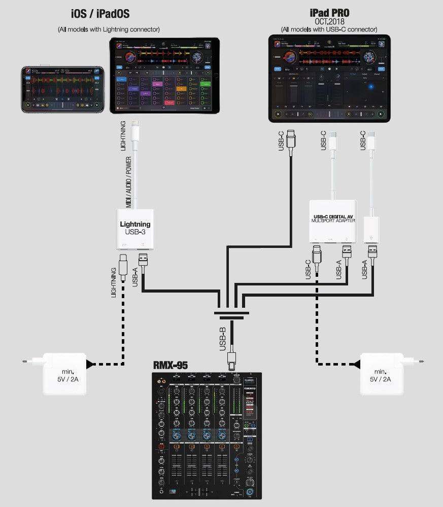 Il mixer professionale per club RMX-95 a 4+1 canali sfuma i confini tra flusso di lavoro analogico e tecnologia digitale. L'RMX-95 è uno strumento creativo all'avanguardia e straordinariamente versatile grazie alla sua doppia interfaccia USB 2.0, alla sezione effetti riprogettata, alla mappatura MIDI opzionale di tutti i controlli e alla perfetta integrazione con il software per DJ djay Pro. Il mixer per club ha un'interfaccia familiare e intuitiva, che lo rende adatto sia ai DJ professionisti che a quelli amatoriali. L'RMX-95 eccelle anche in termini di connettività: quattro ingressi CD, due ingressi di linea e due ingressi phono sono disponibili sui quattro canali di ingresso. Il canale microfono separato dispone di due connessioni microfono (1 jack, 1 jack combinato jack/XLR) e di un ingresso AUX aggiuntivo. L'uscita master offre connessioni RCA o XLR bilanciate. L'uscita booth dispone di due connessioni jack per il funzionamento stereo. Tuttavia, può essere utilizzata anche in modalità mono. Un dispositivo di registrazione può essere collegato all'uscita Rec tramite jack RCA per registrare i DJ set, indipendentemente dal livello di uscita master. Infine, ma non meno importante, il mixer per DJ dispone di due jack per le cuffie. I dieci ingressi e uscite dell'interfaccia dual-USB 2.0 di alta qualità offrono una qualità audio superiore a 24 bit. Le due porte USB consentono transizioni fluide tra DJ e la massima flessibilità nell'utilizzo di diverse configurazioni nella stessa serata. Inoltre, l'hub USB attivo consente il collegamento di dispositivi USB aggiuntivi. L'architettura digitale dell'RMX-95 trasforma il mixer per DJ in un controller MIDI mappabile individualmente. Il menu di configurazione offre inoltre una vasta gamma di opzioni personalizzabili, come la gamma di frequenza dell'equalizzatore, la modalità di equalizzazione Neural Mix™, il routing dell'interfaccia audio e il routing a zona per l'uscita booth. L'RMX-95 funziona con Algoriddim djay Pro tramite plug and play. L'innovativa funzione Neural Mix™ dell'app per DJ consente di isolare beat, melodie e voci nel mix in tempo reale. L'RMX-95 supporta l'integrazione DVS avanzata di djay Pro con Mac, PC, iPhone e iPad. Il software per DJ è compatibile anche con i servizi di streaming¹ come Apple Music, Tidal, SoundCloud, Beatport e Beatsource.