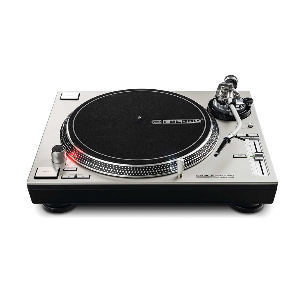 Reloop RP-7000 MK2 Giradischi Professionale a trazione diretta per Dj, Silver. Con l'RP-7000 MK2, Reloop ha realizzato un giradischi che soddisfa le elevate esigenze dei DJ professionisti e dei locali notturni moderni. Con il suo potente motore a trasmissione diretta e la costruzione robusta siamo stati in grado di sviluppare un giradischi robusto e indistruttibile che può affrontare la dura vita di tutti i giorni con facilità. Utilizzando una combinazione di metallo, gomma e materiali sintetici, l'alloggiamento dell'RP-7000 MK2 è più rinforzato e pesante che mai. Ciò si traduce in un giradischi estremamente resistente alle vibrazioni che possono essere causate dai suoni di bassi pesanti nelle cabine DJ e i suoi piedi che assorbono gli urti aiutano a migliorare ulteriormente l'isolamento. La superficie è rivestita con una finitura metallica nera di alta qualità resistente ai graffi o argento classico. L'RP-7000 MK2 presenta un braccio a forma di S bilanciato staticamente con sollevamento idraulico e meccanismo anti-pattinaggio. La base del braccio tono di nuova concezione offre stabilità migliorata e angolo di tracciamento verticale / verticale (VTA) regolabile. Il braccio a bassa risonanza viene fornito con una connessione universale per i sistemi di cartucce pick-up (PMI). Oltre alle suddette innovazioni tecniche, l'RP-7000 MK2 è dotato di alcune funzioni che renderanno la vita di qualsiasi DJ molto più semplice. La luce di destinazione a LED in alluminio di nuova concezione è liberamente mobile per aiutarti a trovare la posizione dello stilo in un ambiente buio. La luce target è anche rimovibile e facilmente sostituibile. È stato inoltre integrato un pulsante di avvio / arresto aggiuntivo per facilitare una configurazione verticale (posizione di battaglia) e utilizzando i pulsanti sul pannello superiore dell'RP-7000 MK2, è possibile alternare tra le tre velocità del motore (33 1/3, 45 e 78 rpm). I pulsanti dedicati per la modalità avanti e indietro consentono ulteriore creatività nel tuo mix. Utilizzando il fader del pitch ad alta risoluzione è possibile regolare la velocità del piatto nella classica gamma del pitch del giradischi +/- 8%. Tuttavia, l'RP-7000 MK2 è anche un cavo con una gamma di pitch +/- 16% più ampia, adatta ai DJ e un enorme ultra-pitch del +/- 50%. Ciò consente una maggiore creatività durante la modulazione del tono del disco riprodotto. Se il blocco al quarzo è attivo, la velocità del piatto rimarrà inalterata dalla posizione del fader e ruoterà a passo zero (0%). Grazie al pannello di connessione posteriore incassato, l'RP-7000 MK2 può essere facilmente montato in una flight case e posizionato senza soluzione di continuità accanto ad altri dispositivi DJ. Il preamplificatore phono integrato commutabile consente di utilizzare i connettori RCA placcati in oro sia per i segnali di uscita phono che line. Un terminale di terra opzionale offre una protezione aggiuntiva negli ambienti del club. Tutti i collegamenti dei cavi (RCA / rete) sono staccabili e facili da sostituire, il che aiuta anche con il trasporto e lo stoccaggio. Il motore messo a punto al quarzo con correzione del passo digitale funziona con una coppia di spunto di 2,8 kg / cm, che può essere regolata fino a un massimo di 4,5 kg / cm. Questo lo rende un giradischi estremamente fluido con wow e flutter di appena lo 0,01% WRMS *. Inoltre, la velocità di rottura del piatto rotante (arresto del piatto) può essere regolata da 0,2 a 6 secondi e il piatto in alluminio pressofuso pesante e lavorato con precisione è rivestito con gomma che riduce le vibrazioni per eliminare vibrazioni e risonanze indesiderate.