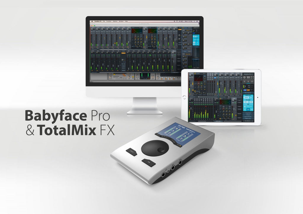 La nuovissima Babyface Pro dimostra ancora una volta il livello elevatissimo di qualità costruttiva del marchio RME, leader mondiale nella realizzazione di dispositivi audio professionali rigorosamente Made in Germany. Realizzata in un unico blocco solido in alluminio, questa interfaccia audio professionale portatile integra circuiti analogici e digitali interamente ridisegnati e nuove tecnologie per il risparmio energetico che garantiscono un livello qualitativo ottimale in ogni condizione. La prima differenza che risulta subito evidente rispetto alla versione precedente della Babyface (ora fuori produzione) è la dotazione "on board" di tutte le principali connessioni, senza più necessità del cavo break out esterno non sempre pratico e funzionale. Per gli ingressi e le uscite principali RME ha progettato un nuovo socket XLR che si integra alla perfezione nello chassis, consentendo un buon risparmio di spazio. Le due uscite cuffie, una con connettore mini jack e una TRS in parallelo, garantiscono un livello di segnale ottimale per ogni situazione, a prescindere dalla cuffia utilizzata. I due preamplificatori onboard con controllo digitale prevedono l'alimentazione Phantom 48V selezionabile singolarmente: questi nuovissimi circuiti offrono un guadagno fino a 70dB, regolabile in step da 3dB, con anche un PAD basato su relé che garantisce un eccezionale livello di EIN (Equivalent Input Noise), così come overload protection e guadagno ottimale anche per microfoni con livelli non elevati. La progettazione estremamente curata della Babyface Pro consente di lavorare senza necessità di alimentazione esterna praticamente in ogni situazione. L'interfaccia è perfettamente stabile con un alimentazione su bus USB3, ma anche con la maggior parte delle connessioni USB 2, senza nessun decadimento delle prestazioni. Questo rende la Babyface Pro la soluzione ideale per il mobile recording, perfetta in ogni occasione con una coppia di microfoni a condensatore. L'ampia gamma di connessioni prevede anche ingresso e uscita ottica TOSLINK utilizzabile come porta ADAT con supporto SMUX o come SPDIF per sessioni fino a 192kHz. Con un convertitore ADAT esterno, la Babyface Pro è in grado di gestire 12 ingressi e 12 uscite analogiche, diventando un dispositivo perfetto per registrazioni multitraccia in studio e live. Agli ingressi jack 3 e 4 è possibile collegare segnali instrument, di linea o ad alta impedenza, potendo quindi registrare ad esempio una chitarra "al volo" senza necessità di altro hardware. Completa la dotazione un ingresso e un'uscita MIDI tramite apposito cavo adattatore. Naturalmente la Babyface Pro ha in dotazione anche il software TotalMix FX di RME, disponibile per Windows, Mac OS X e iOS. Il TotalMix FX consente di inserire EQ, riverbero e delay su tutti i canali di ingresso e di uscita fino a 192kHz. La sezione Control Room aggiunge alla flessibilità del routing una serie di funzioni avanzate di monitoring che semplificano notevolmente il lavoro in studio.