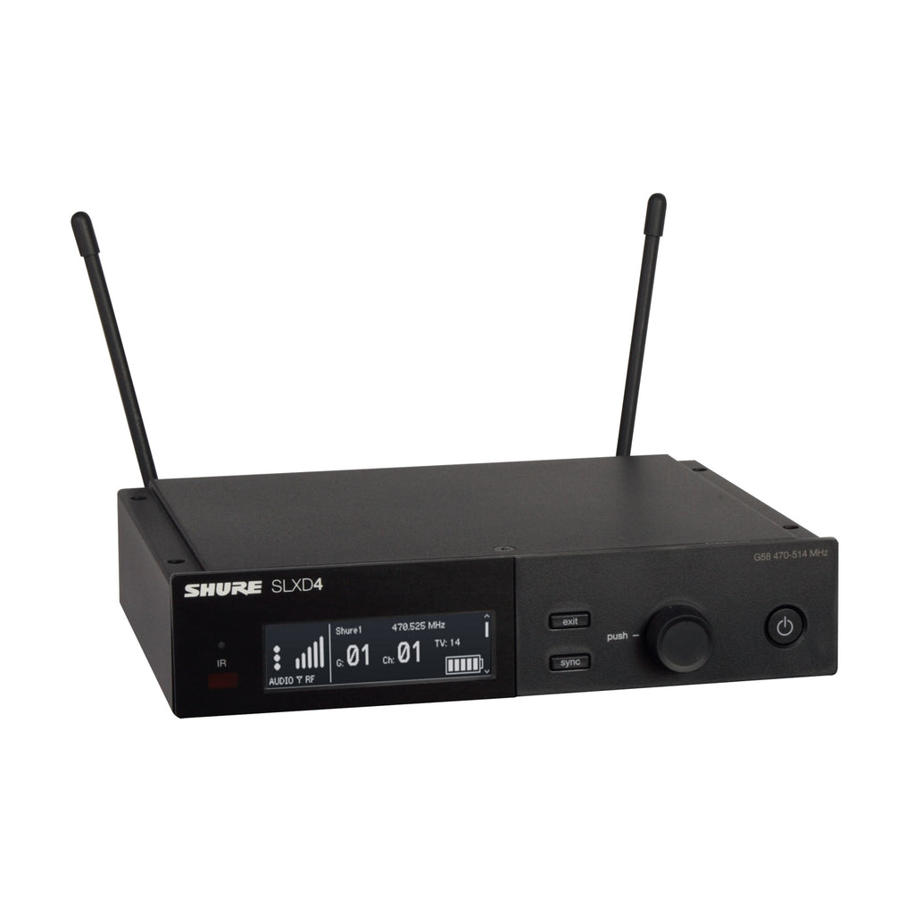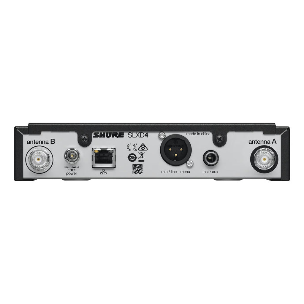 Il Ricevitore SLXD4 è la scelta a cui affidarsi con sicurezza per presentazioni e performance - dalle aule all'intrattenimento live. Ricevitore per radiomicrofono digitale serie SLX-D. Banda J53 (562-606 Mhz ) singolo canale. Fino a 32 sistemi per banda, procedura guidata per la ricerca dei canali disponibili e sincronizzazione del trasmettitore tramite IR. Display OLED sul fronte.