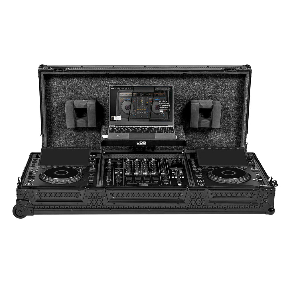 UDG U91111BL Ultimate Flight Case Set AlphaTheta CDJ-3000X/DJM-A9 Black Plus (Laptop Shelf + Wheels)