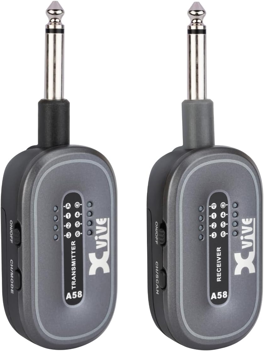 Porta la tua performance a un livello superiore con il sistema wireless per chitarra A58! La banda wireless a 5,8 GHz offre connessioni ultra affidabili su una distanza di 100 piedi. Il design all'avanguardia di A58 ti offre una qualità audio impeccabile con bassa latenza e fantastiche nuove funzionalità, tra cui la scansione automatica del miglior canale wireless e modalità sia passive che attive. La gamma di frequenza a 5,8 GHz è meno affollata di quella a 2,4 GHz, quindi con il sistema A58 hai meno probabilità di incontrare interferenze da altri dispositivi wireless nella zona. Goditi connessioni wireless solide come la roccia con audio ad alta risoluzione a 24 bit/48 kHz, latenza impercettibilmente bassa (5 ms) e suono super pulito (rapporto segnale-rumore: 110 dB). La sorprendente portata wireless di 100 piedi di A58 ti dà la libertà di andare ovunque, sul palco o fuori! A58 offre sia la modalità passiva che quella attiva, così puoi usare strumenti con qualsiasi tipo di pickup, dal passivo vintage all'attivo ad alto guadagno. Il sistema A58 offre una scelta di sei diversi canali wireless tra cui scegliere. Ma ecco la parte migliore: è in grado di scansionare i canali disponibili e scegliere automaticamente quello con il segnale più forte e chiaro! Ogni volta che ti trovi in ??un nuovo locale, premi il pulsante di scansione sul ricevitore per trovare e impostare il canale migliore, quindi imposta il trasmettitore sullo stesso. Quando spegni il trasmettitore e il ricevitore tra un set e l'altro e li riaccendi, verrà richiamata la selezione del canale più recente. È inclusa una custodia robusta e compatta per proteggere il trasmettitore, il ricevitore e il cavo di ricarica ovunque tu vada. Carica il trasmettitore e il ricevitore contemporaneamente utilizzando il doppio cavo USB-C e qualsiasi alimentatore USB da 5 V 2 A. Una ricarica di due ore e mezza ti dà 5 ore di riproduzione; 1,25 ore ti danno 2 ore di riproduzione e 30 minuti di ricarica ti danno 1 ora. Le unità possono essere utilizzate durante la ricarica, ma tieni presente che è meglio per la lunga durata delle batterie non lasciarle collegate e completamente cariche per lunghi periodi. Qualsiasi connessione che normalmente effettui con un cavo da ¼" può essere sostituita con una connessione wireless: il trasmettitore A58 può connettersi al tuo strumento o pedale effetto, ad esempio, mentre il ricevitore può connetterti al tuo amplificatore, al tuo modellatore di ampli o alla tua pedaliera. Potresti usare due set in un impianto, uno dal tuo strumento ai tuoi effetti e un altro set dai tuoi effetti al tuo amplificatore. Le unità A58 hanno un design con vano batteria aperto, che facilita il test e la manutenzione della batteria al litio integrata da parte di tecnici di riparazione qualificati.