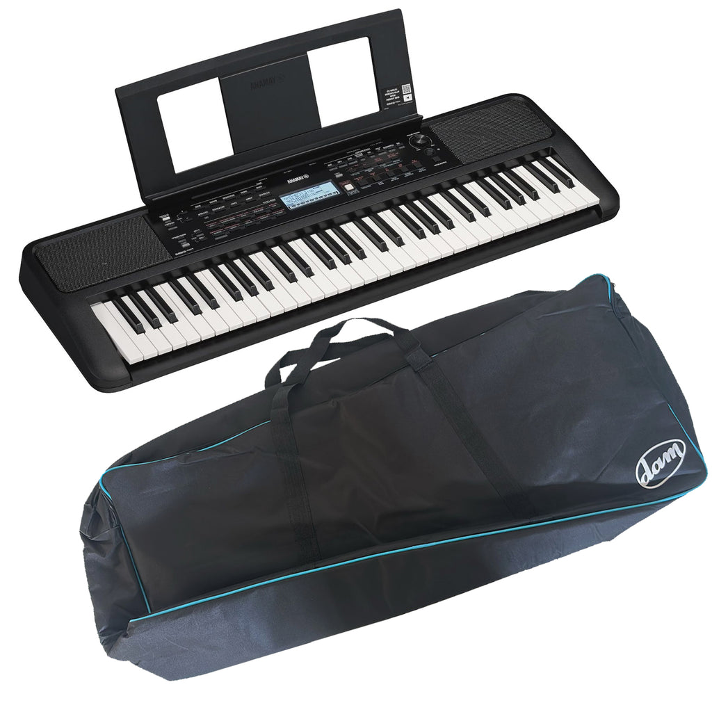 Tastiera Digitale Entry Level Portatile da 61 Tasti con funzioni didattiche, Nero + Borsa per trasporto tastiera, robusta e antistrappo con imbottitura 12 mm e cernieria resistente, Nero con rifiniture in Azzurro.