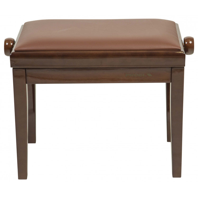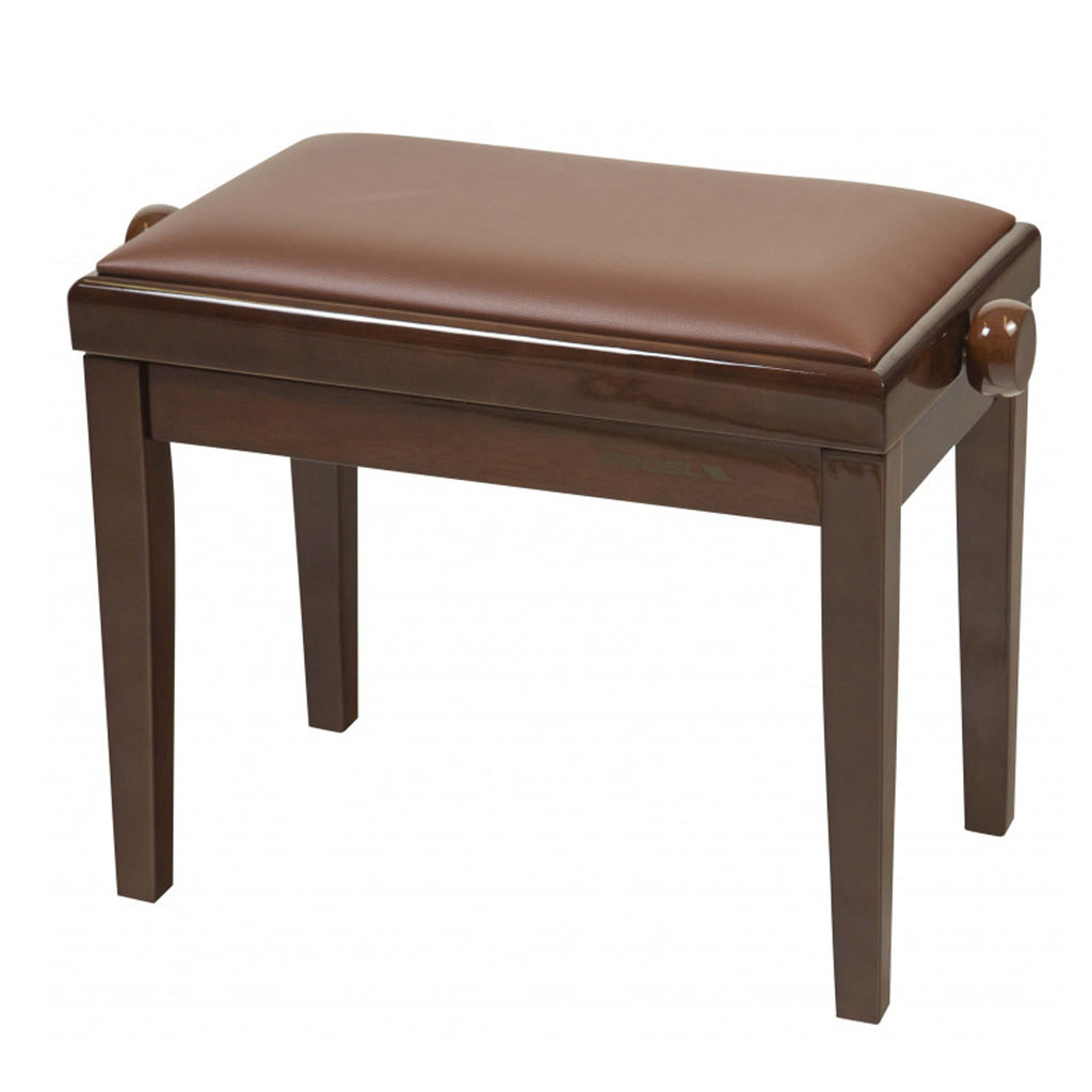 Proel PB90SBWBR Panca professionale regolabile in legno per piano, Noce Lucido. Panca professionale regolabile in legno per piano ed organo, seduta imbottita con rivestimento in similpelle, meccanica in acciaio con finitura tropicalizzata, comode manopole per la regolazione dell'altezza. Telaio Noce Lucido. Cuscino con rivestimento in similpelle marrone.