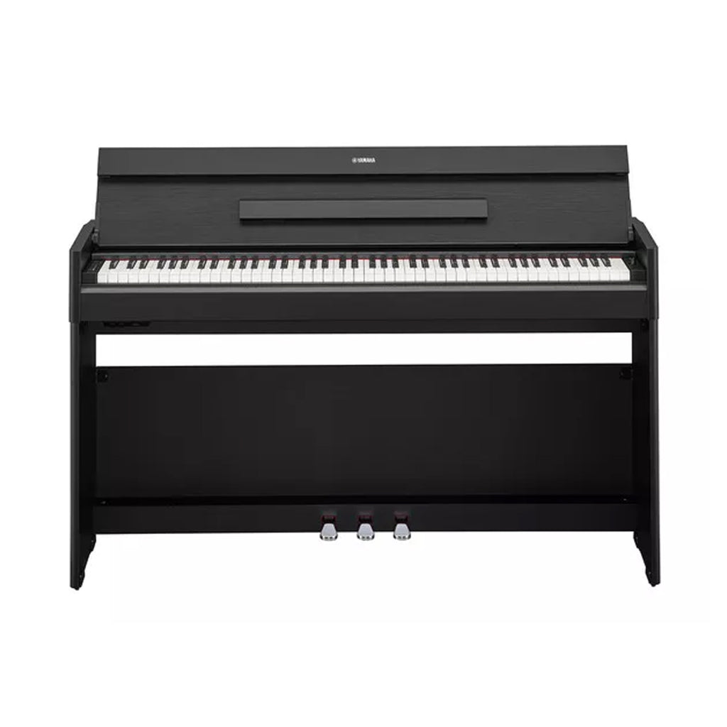 Yamaha YDP-S55B Pianoforte Tastiera Digitale 88 Tasti Pesati, Nero. I modelli YDP-S55 sono tutti dotati di un suono di pianoforte campionata dal pianoforte a coda da concerto CFX, modello di punta di Yamaha, un rinomato pianoforte che offre alti scintillanti e bassi potenti e risonanti combinati in un suono superbamente espressivo. L'YDP-S55 ha lo stesso suono dettagliato, dai tasti più bassi a quelli più alti, pieno di chiarezza e ricco di coloratissimi contenuti armonici. Ti dà una straordinaria potenza espressiva e sfumature, che rispondono autenticamente al tuo studio quotidiano così come alle tue esibizioni piene di emozioni. Con un'action da pianoforte a 88 tasti, la tastiera GH3 (Graded Hammer 3) emula il tocco di un pianoforte acustico, dando una sensazione naturalmente pesante sui tasti inferiori ed un tocco più leggero sulle ottave superiori. La tastiera GH3 fornisce una risposta e una sensazione in stile pianoforte a coda, consentendo una rapida ripetizione delle note ed un autentico controllo espressivo. Inoltre, c'è una funzione di mezzo pedale che replica autenticamente l'azione degli smorzatori su un pianoforte a coda, fornendo una ricca variazione espressiva. Una delle attrattive del pianoforte a coda è la risonanza acustica creata dalla vibrazione dell'intero strumento. L'YDP-S55 riproduce in modo elaborato questa ricca risonanza attraverso una tecnologia rivoluzionaria chiamata Virtual Resonance Modeling Lite (VRM Lite). VRM Lite crea un suono riccamente vario simulando i complessi suoni simpatici creati quando le vibrazioni delle corde si propagano alla tavola armonica e ad altre corde, corrispondenti al tempo e all'intensità con cui vengono suonati i tasti e i pedali. Naturalmente, l'YDP-S55 ha un autentico suono di pianoforte a coda, ma presenta anche vari altri suoni di strumenti integrati, per un totale di 10 suoni, tra cui piano elettrico, organo, vibrafono e archi. L'YDP-S55 ha anche 353 brani incorporati, tra cui 50 famosi brani classici e 303 esercizi completi di metodi famosi, come Beyer, Burgmüller, Czerny e Hanon. Lo strumento è anche compatibile con l'app gratuita Smart Pianist di Yamaha: è sufficiente scaricare l'app sul dispositivo smart e collegarla allo strumento. Con l'app Smart Pianist è possibile impostare facilmente le varie funzioni Voice dello strumento e utilizzarla per richiamare gli spartiti dei brani incorporati. Dispone inoltre di una funzione Piano Room completa per modificare la qualità tonale e le impostazioni di risonanza del suono del pianoforte. L'YDP-S55 utilizza una nuova tecnologia che ottimizza il bilanciamento del suono in base al volume impostato, offrendoti un suono eccezionalmente naturale facile da ascoltare e delicato per le orecchie, anche quando si suona a lungo. Ha anche l'effetto Stereophonic Optimizer che ti consente di goderti il ??suono naturale e spazioso che provi seduto davanti ad un pianoforte a coda acustico, anche quando indossi le cuffie. Il cabinet del pianoforte ha una profondità sottile che ti consente di installarlo ordinatamente in qualsiasi stanza e crea un design chic ed elegante che migliora il tuo spazio abitativo. Inoltre, la chiusura del coperchio della tastiera conferisce allo strumento un aspetto discreto.