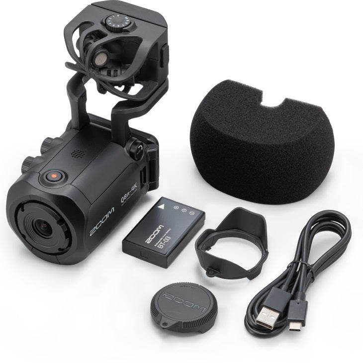 Lo Zoom Q8n-4K è progettato per acquisire audio di livello professionale con video 4K in un pratico registratore versatile e all-in-one. E' la soluzione perfetta per la produzione di video e lo streaming live per i musicisti, i registi, i podcaster di oggi e altro ancora. Il Q8n-4K è progettato per consentire ai creatori di mostrare il loro miglior suono e aspetto, elevando i tuoi video con quattro tracce audio, insieme al video 4K UHD. Rispetto ad una mirrorless o DSLR, le dimensioni di questa fotocamera sono pensate per adattarsi perfettamente alla tua produzione mentre il suo prezzo assicura che si adatti al tuo budget. Con la capsula microfonica X/Y inclusa e i due ingressi XLR, puoi catturare fino a quattro tracce di audio cristallino simultaneamente. Cattura ogni strumento e voce della tua band eseguendo le uscite principali di un mixer direttamente sul tuo Q8n-4K. Sfrutta le dimensioni compatte, le immagini vivide e l'audio di alta qualità del Q8n-4K, registrando il tuo aspetto e il tuo suono originali durante le esibizioni dal vivo o in studio. Registra in risoluzione 4K a 30fps. Con l'obiettivo grandangolare F2.8/150º, cinque impostazioni del campo visivo (FOV) e regolazioni della luminosità, il Q8n-4K produce una qualità video vivida ad ogni ripresa. Collegati facilmente tramite USB al tuo computer e riproduci in streaming sulle tue piattaforme preferite. L'app Q8n Control per iOS ti consente di monitorare da remoto i tuoi livelli e di avviare e interrompere la registrazione (è necessario un adattatore Bluetooth BTA-1).